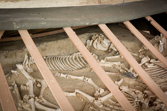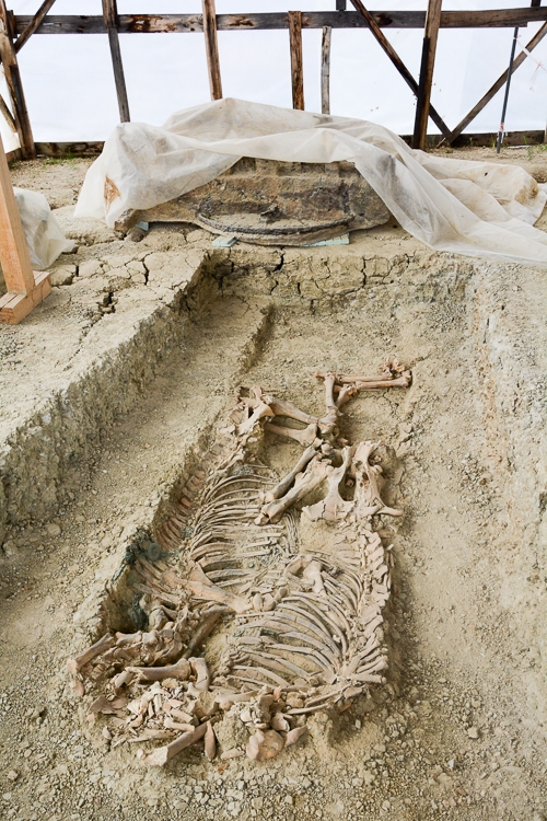 Next to them, another five horses were buried. The metal functional and decorative parts of the carriages remain intact, whereas the wooden parts can still be seen in two of them.