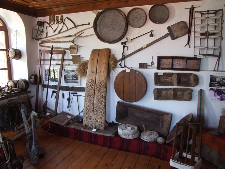 The highlight of the museum is, though, the comprehensive display of the traditional costumes. The men’s one is comprised by the tsirvoulia (shoes), kaltsoun(socks), the vraka ( trousers), the znar (belt), the pkamsiou ( shirt), the gileki ( vest), the abas ( jacket) and the hat. The women’s costume is simple but beautiful. The light blue or red skirt is decorated with a belt with silver clasps. The white headscarves are as long as the women’s hair and cascades on their backs like a veil.