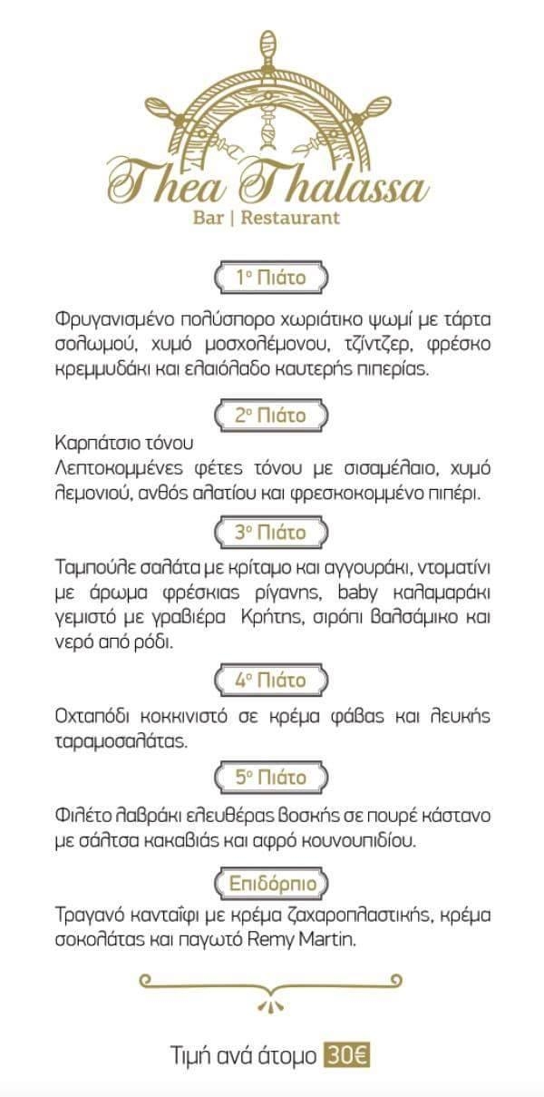Ένα απολαυστικό μενού θα έχουν την ευκαιρία να γευτούν όσοι βρεθούν την Τρίτη 8 Νοεμβρίου, στις 21:30 στο "Τhea Thalassa".