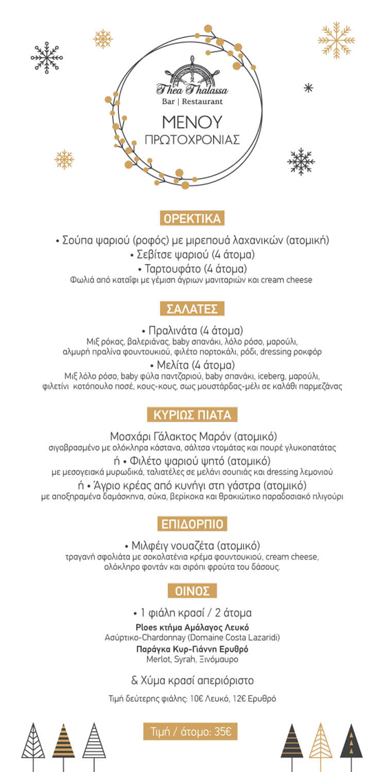 To εστιατόριο του Θέα Θάλασσα σας προσκαλεί όλους να γιορτάσετε μαζί τον ερχομό του νέου χρόνου με τον πιο διασκεδαστικό τρόπο!