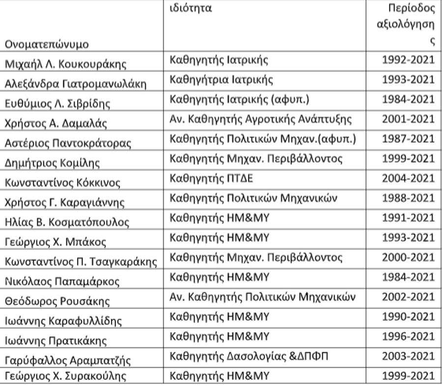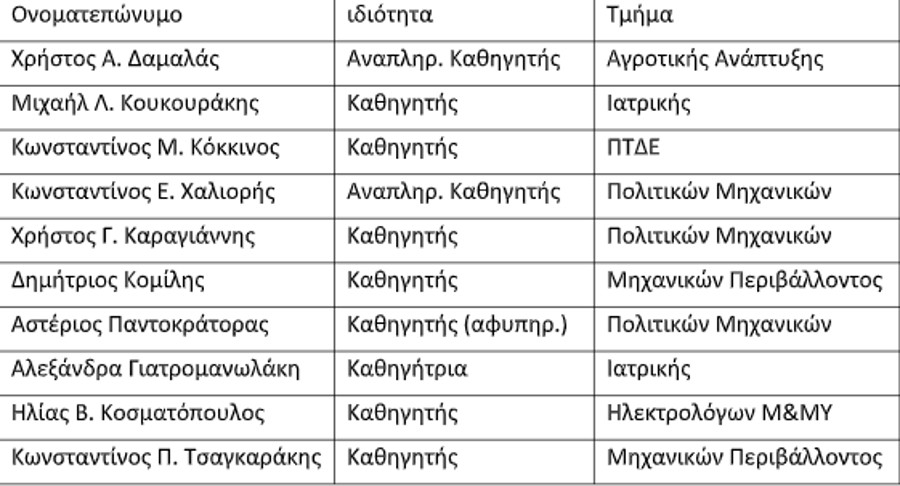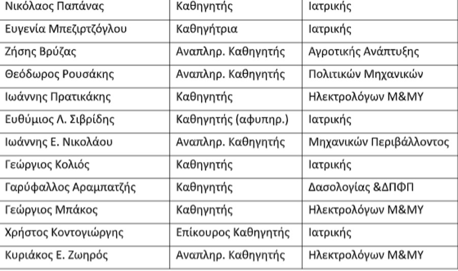 Συνολικά, και στις δύο λίστες, εμφανίζονται είκοσι πέντε (25) μέλη του ακαδημαϊκού προσωπικού του Ιδρύματος.