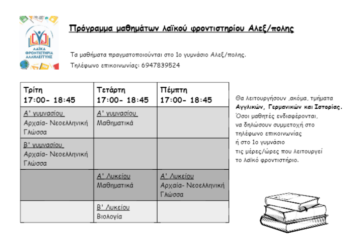 Αλεξανδρούπολη: Για πέμπτη χρονιά λειτουργεί το Λαϊκό Φροντιστήριο (πρόγραμμα)