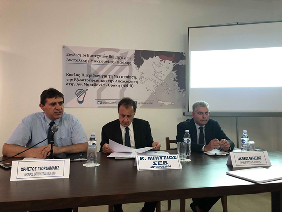 Ένα άκρως αποδοτικό και εποικοδομητικό διήμερο έκλεισε σήμερα, κατά τη διάρκεια του οποίου τα μέλη των Συνδέσμων Βιοτεχνιών, Βιομηχανιών και Εξαγωγικών Επιχειρήσεων της Θράκης (Σύνδεσμος Βιοτεχνιών Βιομηχανιών Έβρου) και μέλη του Σ.Ε.Β. (Σύνδεσμος Επιχειρήσεων και Βιομηχανιών) με επικεφαλής τον Αντιπρόεδρο κο. Κωνσταντίνο Μπίτσιο ανταλλάχθηκαν απόψεις και μεταφέρθηκαν τα προβλήματα των επιχειρήσεων της περιοχής.
