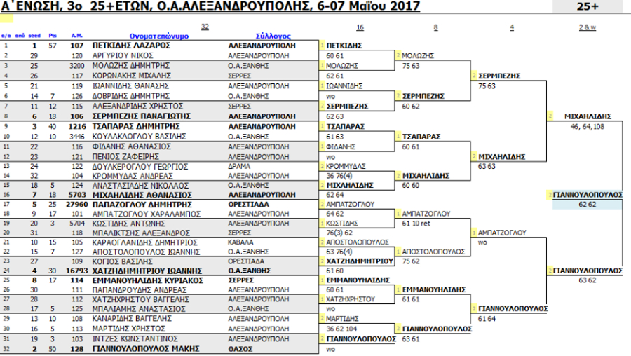 Με μεγάλη επιτυχία διεξήχθη το 3ο Τουρνουά Βετεράνων της Α’ Ένωσης το Σαββατοκύριακο 6-7 Μαΐου 2017 στις εγκαταστάσεις του Ομίλου Αντισφαίρισης Αλεξανδρούπολης.