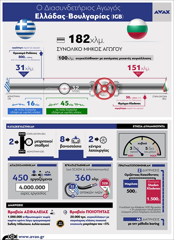 Η έναρξη της εμπορικής λειτουργίας του Διασυνδετήριου Αγωγού Φυσικού Αερίου Ελλάδας Βουλγαρίας (IGB) στις αρχές του προηγούμενου μήνα σηματοδότησε ένα πολύ σημαντικό βήμα της Ευρώπης στην πορεία της για ενεργειακή απεξάρτηση και αναδεικνύει το στρατηγικό γεωπολιτικό ρόλο της Ελλάδας καθιστώντας την ένα νέο και ισχυρό ενεργειακό κόμβο.