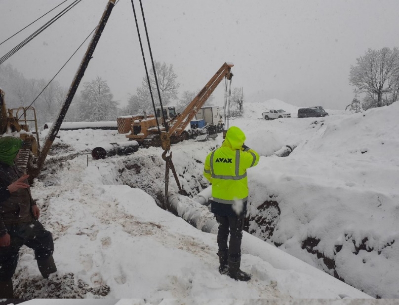 Μηχανολογική διασύνδεση αγωγών σε κακές καιρικές συνθήκες.