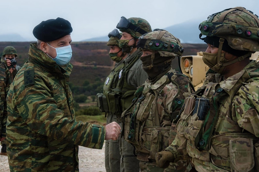 Κατά τον χαιρετισμό του ο Αρχηγός επεσήμανε το υψηλό επίπεδο επιχειρησιακής συνεργασίας των Ενόπλων Δυνάμεων των δύο χωρών και συνεχάρη το ασκούμενο προσωπικό για την επίτευξη των αντικειμενικών σκοπών της άσκησης.
