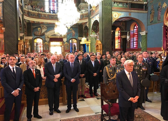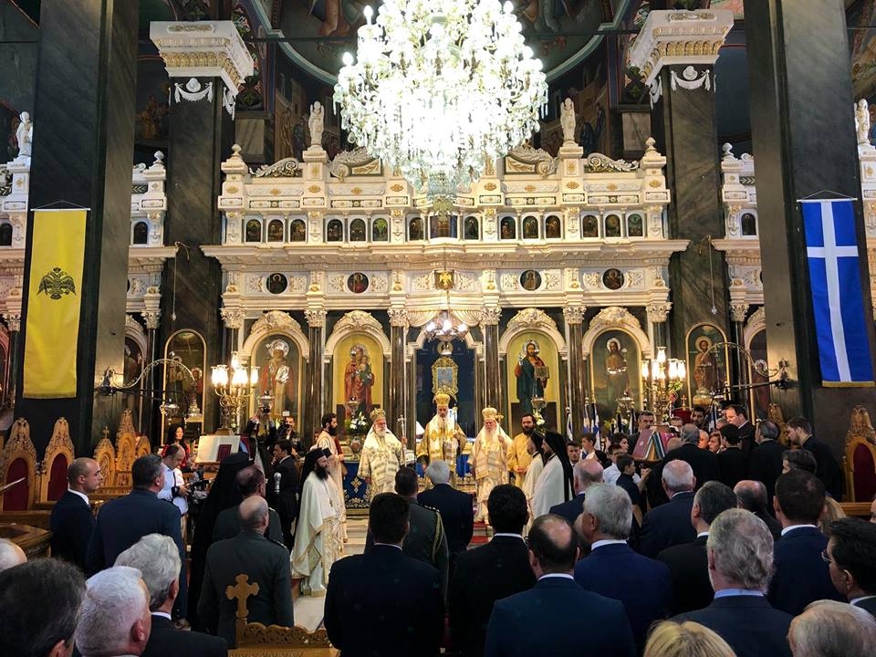 Αξίζει να σημειωθεί πως κατά την είσοδο του στον προαύλιο χώρο του Ναού ακούστηκε ο Εθνικός Ύμνος από το Άγημα του Ελληνικού Στρατού που βρίσκεται στον χώρο.