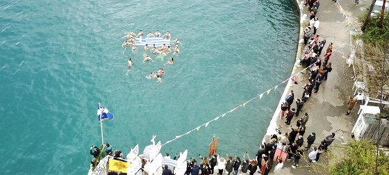 Στιγμιότυπο από την ρίψη του Τίμιου Σταυρού στη Λίμνη του Τυχερού.