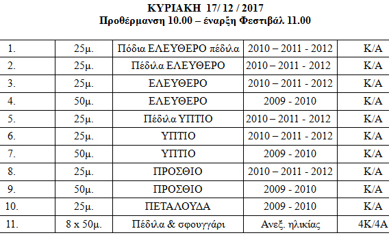 - 17/12/2017 ΚΥΡΙΑΚΗ πρωί : προθέρμανση 10.00 , έναρξη 11.00
