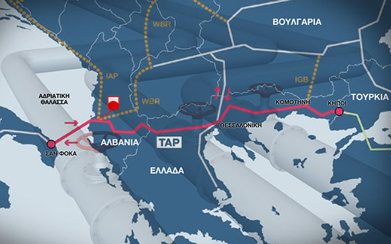 "Τα τελευταία χρόνια, η Ευρωπαϊκή Ένωση λόγω και των ευμετάβλητων γεωπολιτικών συνθηκών στην ευρύτερη περιοχή, έχει θέσει ως στρατηγική της προτεραιότητα τη διαφοροποίηση του ενεργειακού της εφοδιασμού, μέσω της δημιουργίας του Νότιου Διαδρόμου (South Corridor) για τη μεταφορά φυσικού αερίου από την περιοχή της Κασπίας σε όσο δυνατόν περισσότερους Ευρωπαϊκούς προορισμούς. Ένα από τα σημαντικότερα επιμέρους ενεργειακά έργα του Νοτίου Διαδρόμου, αποτελεί ο αγωγός φυσικού αερίου TAP. Ο TAP θα έχει συνολικό μήκος 863 χλμ., εκ των οποίων τα 543 χλμ θα κατασκευαστούν στην Ελλάδα. Το ύψος της επένδυσης μόνο για το ελληνικό τμήμα, ανέρχεται στο 1,5 δις ευρώ, ενώ στην κοινοπραξία κατασκευής του αγωγού συμμετέχουν μερικές από τις μεγαλύτερες ενεργειακές εταιρίες σε παγκόσμιο επίπεδο, ήτοι: BP, Socar, Statoil, Fluxys, Enagas & Axpo.