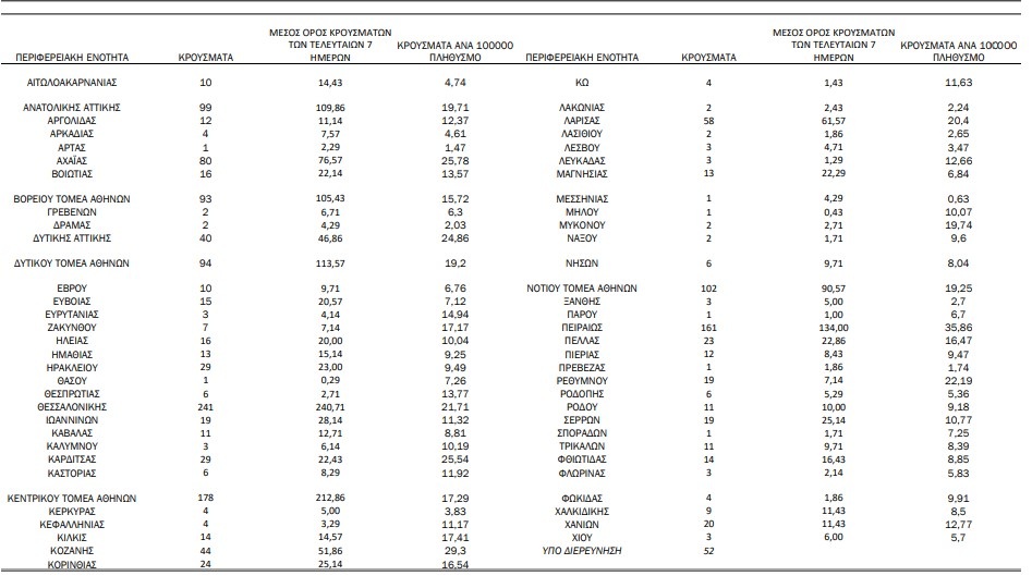 Όσον αφορά την ΑΜΘ οι αριθμοί των νέων κρουσμάτων ανά ΠΕ έχουν ως εξής: