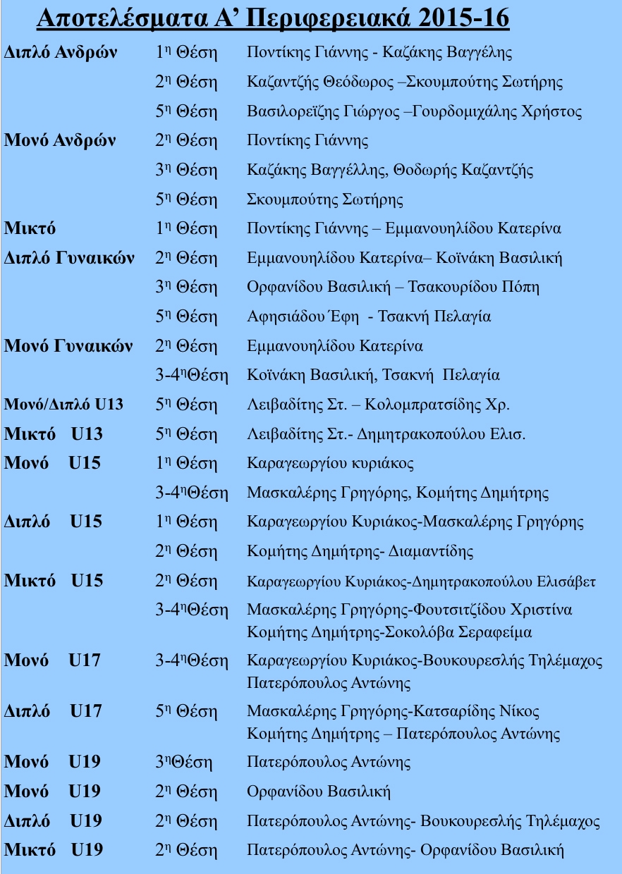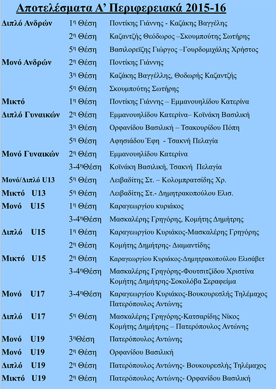 Τα αποτελέσματα των αγώνων έχουν ως εξής: