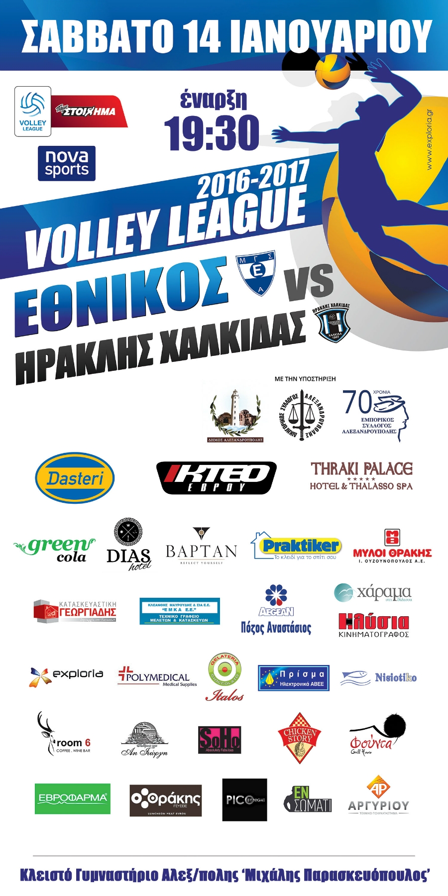 Ο ΜΓΣ Εθνικός Αλεξανδρούπολης καλεί όλο το φίλαθλο κόσμο της Αλεξανδρούπολης στον αγώνα του β΄γύρου της Volleyleague το Σάββατο 14 Ιανουαρίου στις 19:30, στο κλειστό γυμναστήριο Μιχάλη Παρασκευόπουλος κόντρα στον Ηρακλή Χαλκίδας.
