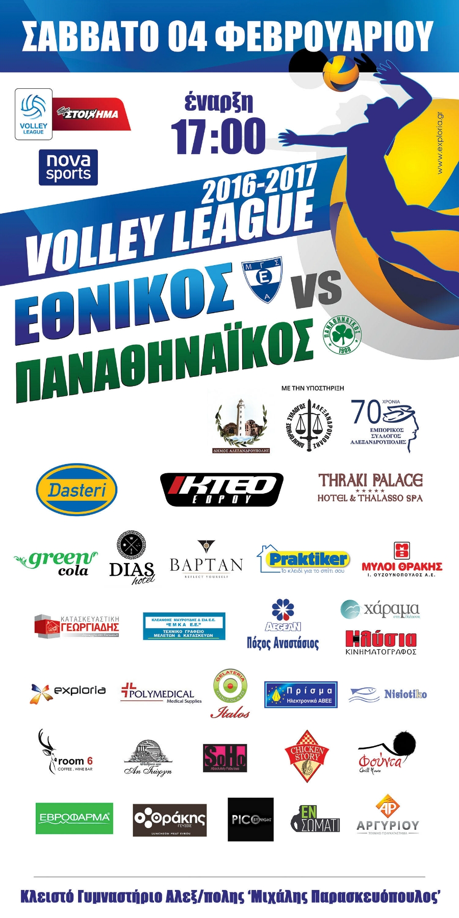 Ο ΜΓΣ Εθνικός Αλεξανδρούπολης καλεί όλο το φίλαθλο κόσμο της Αλεξανδρούπολης στον αγώνα του β΄γύρου της Volleyleague το Σάββατο 4 Φεβρουαρίου στις 17:00, στο κλειστό γυμναστήριο Μιχάλη Παρασκευόπουλος κόντρα στον Παναθηναϊκό.