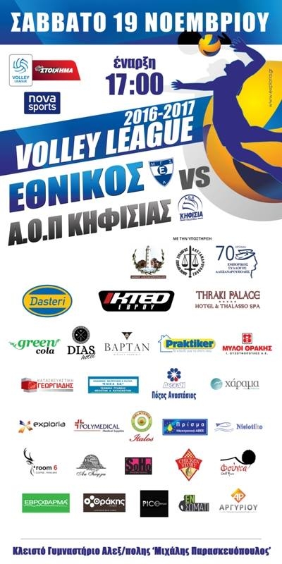 Έπειτα από τις αναμετρήσεις του Εθνικού με τον ΠΑΟΚ, τον Ηρακλή Χαλκίδας, τον Ολυμπιακό και τον Παναθηναϊκό στην 4η αγωνιστική  αυτό το Σάββατο, 19 Νοεμβρίου, στις 17:00 ο Εθνικός Αλεξανδρούπολης θα αναμετρηθεί με τον  Α.Ο.Π Κηφισιάς.