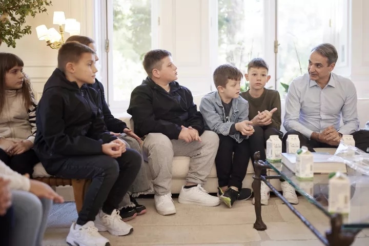 Ο Πρωθυπουργός αντάλλαξε ευχές και δώρα για τις γιορτές με τα παιδιά, συζήτησε με τους νεαρούς μαθητές, τους εκπαιδευτικούς και τους γονείς που τα συνόδευαν για τη ζωή στο σχολείο και το χωριό τους, ενώ είχε και την ευκαιρία να ακούσει τις εντυπώσεις τους από την επίσκεψή τους στην Αθήνα. Τα παιδιά προσκάλεσαν τον Κυριάκο Μητσοτάκη να επισκεφθεί το σχολείο τους.