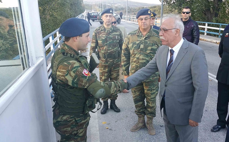 Ο κ. Βίτσας, αφού παρακολούθησε τη παρέλαση στην Αλεξανδρούπολη, επισκέφτηκε το στρατιωτικό φυλάκιο της γέφυρας στους Κήπους του Έβρου, όπου συνομίλησε με τους Έλληνες σκοπούς της γέφυρας στα ελληνοτουρκικά σύνορα.
