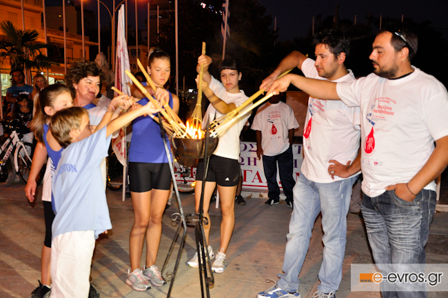 Στον Έβρο η Λαμπαδηδρομία διεξήχθει την Κυριακή 11 Σεπτεμβρίου 2011 από την Ένωση Συλλόγων Εθελοντών Αιμοδοτών. Τη φλόγα μετέφεραν μέλη των Λεσχών Μοτοσικλετιστών Αλεξανδρούπολης, Φερών και Σουφλίου και η λέσχη 4Χ4 Σουφλίου και ποδηλάτες της Ορεστιάδας και της Αλεξανδρούπολης.