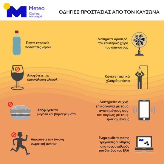 Λόγω των πολύ υψηλών θερμοκρασιών του καύσωνα, το Εθνικό Αστεροσκοπείο Αθηνών καλεί τους πολίτες να τηρούν κατά γράμμα τα μέτρα προφύλαξης.