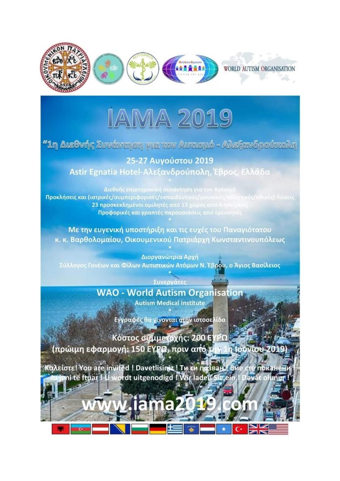 Η Συνάντηση τελεί υπό την Αιγίδα του Οικουμενικού Πατριαρχείου Κωνσταντινουπόλεως και γίνεται με την Υποστήριξη της Παγκόσμιας Οργάνωσης Αυτισμού.