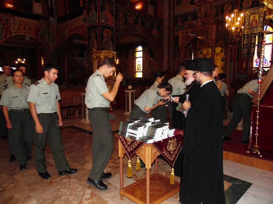 Τέλος τους διένειμε την Καινή Διαθήκη σε παραλλαγή ως ευλογία, για πνευματικό εφόδιο στη ζωή τους, όπως τόνισε.