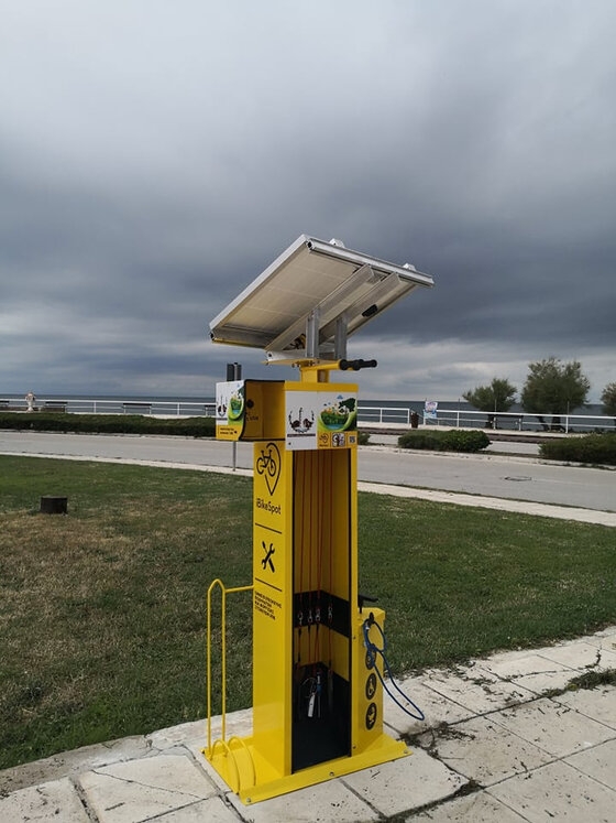 Το i bike spot δίνει στον ποδηλατικό κοινό 24 ώρες 7 ημέρες την εβδομάδα, τη δυνατότητα ελέγχου της λειτουργίας του ποδηλάτου του (έλεγχος φρένων, πίεση, κάθισμα ποδηλάτου), για να ποδηλατούμε πάντοτε με ασφάλεια.