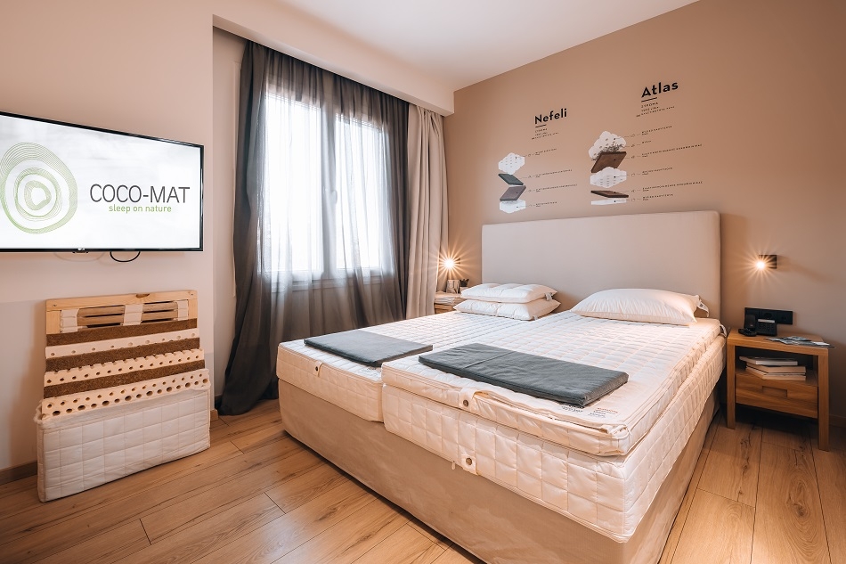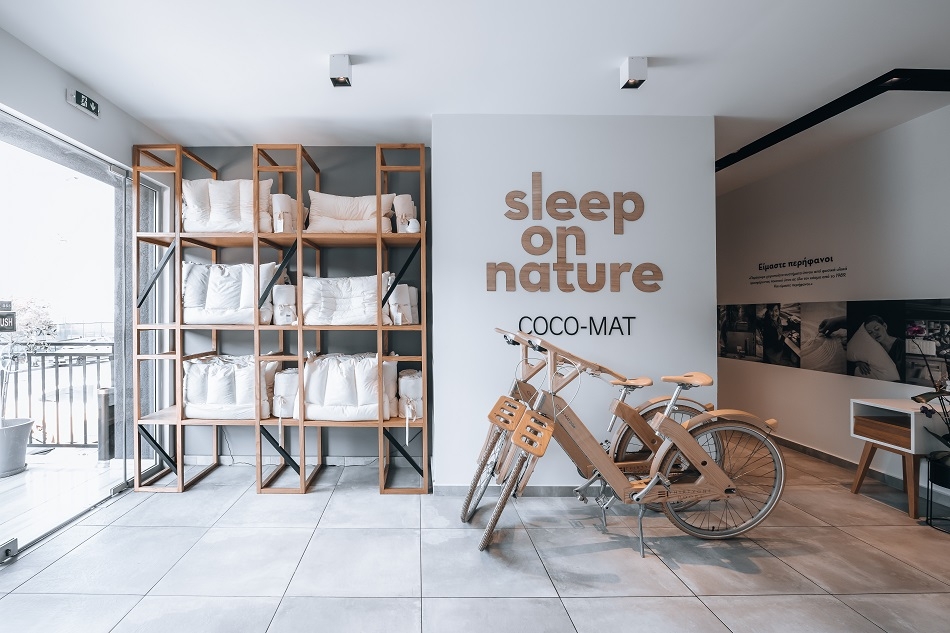 Όλα τα προϊόντα μας φτιάχνονται από φυσικά υλικά ανανεώσιμων πόρων, όπως ίνες κοκοφοίνικα, φυσικό καουτσούκ, μαλλί, βαμβάκι, φύκια, αλογότριχα, μετάξι, λινό, ξύλο και πούπουλο.