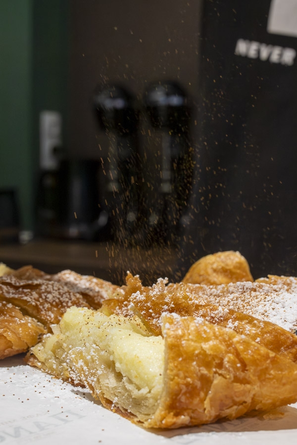 Ο χώρος, λιτός και φιλόξενος, αποπνέει την αίσθηση μιας οικογενειακής επιχείρησης που γνωρίζει καλά τι σημαίνει καθημερινή συνέπεια. Το πρωινό στο κέντρο της πόλης αποκτά ξανά χαρακτήρα: ζεστή μπουγάτσα που κόβεται μπροστά σου, άρωμα καφέ που γεμίζει τον χώρο και μια καλημέρα που δεν είναι τυπική, αλλά ουσιαστική.