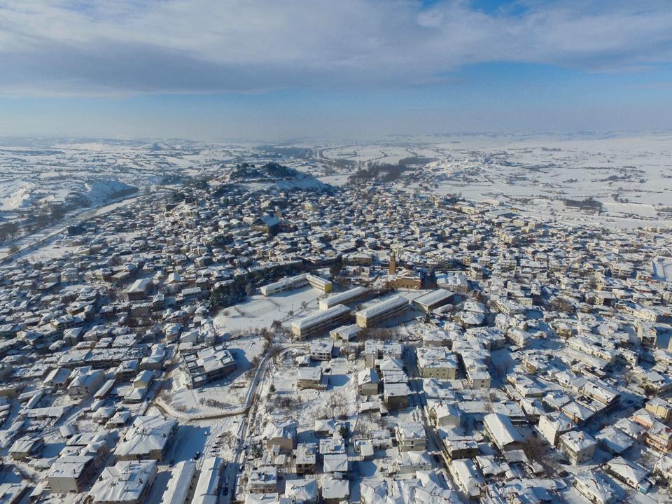 Το χιονισμένο Διδυμότειχο από ψηλά, το τέμενος