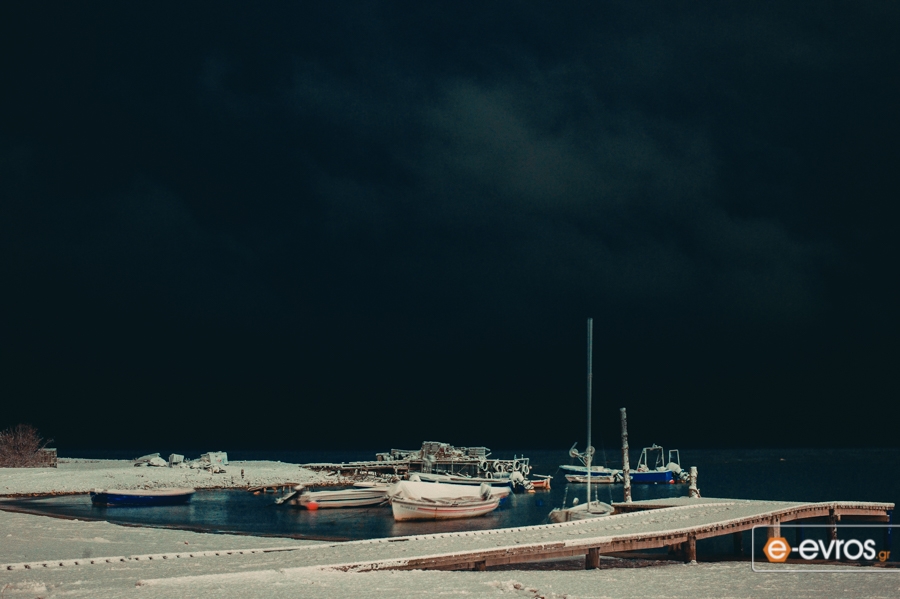 Κινηματογραφικά τοπία στην χιονισμένη Αλεξανδρούπολη τη νύχτα