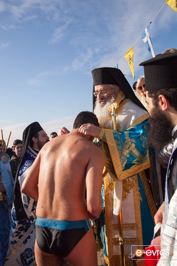 Στις 11:00 πραγματοποιήθηκε η τελετή κατάδυσης του Τίμιου Σταυρού και ο Αγιασμός των Υδάτων. Αρκετοί ήταν οι τολμηροί που αψηφώντας το κρύο τόλμησαν και βούτηξαν στα νερά για να πιάσουν το Σταυρό.