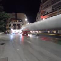 Αλεξανδρούπολη: Τεράστιο κομμάτι ανεμογεννήτριας πέρασε μέσα από το κέντρο της πόλης (video)