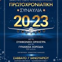 Ο Δήμος Αλεξανδρούπολης με το Δημοτικό Ωδείο μετά την επιτυχημένη επετειακή συναυλία με θέμα τη «Συμπλήρωση 100 χρόνων από την προσάρτηση της Αλεξ/πολης στον Ελληνικό κορμό», πραγματοποιεί το Σάββατο 7 Ιανουαρίου 2023 και ώρα 21.00, μεγάλη Πρωτοχρονιάτικη Εορταστική Συναυλία...