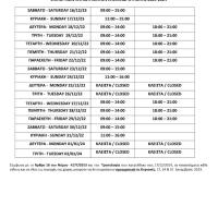 Το Σάββατο 10 Δεκεμβρίου 2022 ξεκινά η εφαρμογή του χριστουγεννιάτικου εορταστικού ωραρίου των εμπορικών καταστημάτων της Αλεξανδρούπολης. Όσον αφορά τις Κυριακές 11 και 18 Δεκεμβρίου, τα καταστήματα μπορούν να λειτουργήσουν προεραιτικά, σύμφωνα με το Άρθρο 16 του Νόμου 4177/2013 και την Τροπολογία που κατατέθηκε στις 17/12/2014. Ακολουθεί...