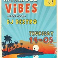 Την Πέμπτη 14 Μαΐου το Room 6 η διασκέδαση ξεκινάει από νωρίς το απόγευμα, στις 16:00 ο dj Destro από τα επιτυχημένα Mainstream Vibes party, θα βρίσκεται στα decks και θα σας χαρίσει άν όμορφο απόγευμα. Με πολύ καλοκαιρινή διάθεση...