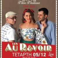 Την Τετάρτη 05 Δεκεμβρίου, οι Les Au Revoir θα βρεθούν στο αγαπημένο Thea Thalassa the Bar για να μας χαρίσουν ένα μοναδικό βράδυ όπως μόνο αυτοί γνωρίζουν, καθώς η μία φορά δεν είναι ποτέ αρκετή! Με ρετρό διάθεση και επιρροή...