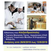 Αναρτήθηκε η προκήρυξη για την εισαγωγή 917 καταρτιζόμενων στα Ινστιτούτα Επαγγελματικής Κατάρτισης (ΙΕΚ) του Υπουργείου Τουρισμού για το έτος κατάρτισης 2019 – 2020. Η προθεσμία υποβολής αιτήσεων απευθείας στις εκπαιδευτικές μονάδες είναι από τη Δευτέρα 26/08/2019 έως και την Παρασκευή...