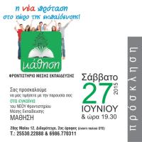 Μπορεί τα σχολεία να έκλεισαν όμως εμείς μόλις ανοίξαμε και σας περιμένουμε να γιορτάσουμε όλοι μαζί την έναρξη του νέου φροντιστηρίου μέσης εκπαίδευσης "Μάθηση". Μία νέα γνωριμία με καταξιωμένους καθηγητές σε ένα ευχάριστο περιβάλλον. Σας προσκαλούμε λοιπόν στα εγκαίνια που...