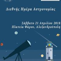 Ο Σύλλογος Ερασιτεχνικής Αστρονομίας Θράκης θα πραγματοποιήσει παρατήρηση με τηλεσκόπια, ανοιχτή για το κοινό. Η παρατήρηση διοργανώνεται με αφορμή την Διεθνή Ημέρα Αστρονομίας, η οποία για το έτος 2018 είναι στις 21 Απριλίου 2018. Λίγο μετά την δύση του Ηλίου...