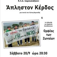 Η Διανομαρχιακή Επιτροπή Ροδόπης-Έβρου ενάντια στην εξόρυξη και μεταλλουργία χρυσού και η Κινηματογραφική Λέσχη Αλεξανδρούπολης σας καλούν στην προβολή της ταινίας του Γιάννη Καρυπίδη "Άπληστον Κέρδος", το Σάββατο 20/9 και ώρα 20.30 στον θερινό Δημοτικό Κινηματογράφο "Φλοίσβος" στην Αλεξανδρούπολη. Πρόκειται για μία ταινία διάρκειας 67'...