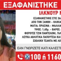 Στις 26/7/2020, στις 07:00, εξαφανίστηκε από το σπίτι της στην περιοχή της Ξάνθης, η Ιλκνούρ Μ., 16 ετών. Η Ιλκνούρ Μ.έχει ύψος 1,65 μ., 52 κιλά βάρος, καστανά μαλλιά και πράσινα μάτια. Την ημέρα που εξαφανίστηκε φορούσε τζιν...