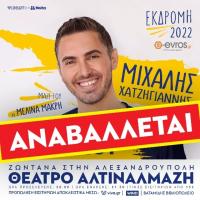 Αναβάλλεται η συναυλία του Μιχάλη Χατζηγιάννη στην Αλεξανδρούπολη. Ακολουθεί και η σχετική ανακοίνωση από την εταιρεία παραγωγής: "Για λόγους αλλαγής προγραμματισμού της εταιρίας παραγωγής του Μιχάλη Χατζηγιάννη , η προγραμματισμένη συναυλία στις 26 Ιουλίου στο θέατρο Αλτιναλμάζη στην Αλεξανδρούπολη αναβάλλεται για...