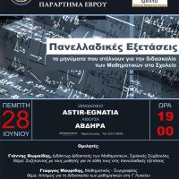 Το παράρτημα Έβρου της Ελληνικής Μαθηματικής Εταιρίας διοργανώνει και φέτος δύο εκδηλώσεις βράβευσης για τους μαθητές που διακρίθηκαν σε διαγωνισμούς μαθηματικών, κατά το σχολικό έτος 2023-2024. @@BANNER9@@ Πιο συγκεκριμένα, το Σάββατο 15 Ιουνίου 2024 και ώρα 19:30, θα πραγματοποιηθεί στο...