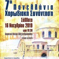 Η 7η Πανελλήνια Χορωδιακή Συνάντηση θα πραγματοποιηθεί το Σάββατο 16 Νοεμβρίου 2019 και ώρα 19.30 στο Δημοτικό Θέατρο της Αλεξανδρούπολης. Συμμετέχουν οι χορωδίες: Χορωδία Αυλιωτών Κέρκυρας- Συνοδεύει η Κερκυραϊκή Μαντολινάτα Χορωδία Τρικάλων Χορωδία Κοινότητας Αφύτου Χαλκιδικής Δημοτική Χορωδία Δ...