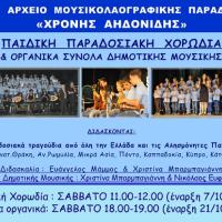 Νέα τμήματα διδασκαλίας της μουσικής από το Αρχείο Μουσικολαογραφικής Παράδοσης "Χρόνης Αηδονίδης"