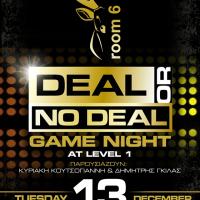 To γνωστό τηλεοπτικό παιχνίδι "Deal or no Deal" έρχεται στον 1ο όροφο του "Room 6" για να σας χαρίσει μια βραδιά με πολύ σασπένς αλλά και πλούσια δώρα! Την Τρίτη 13 Δεκεμβρίου και λίγο μετά τις 21:00 ο πρώτος όροφος...