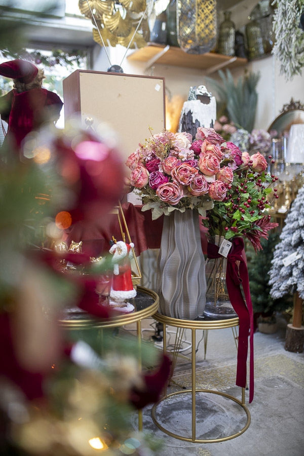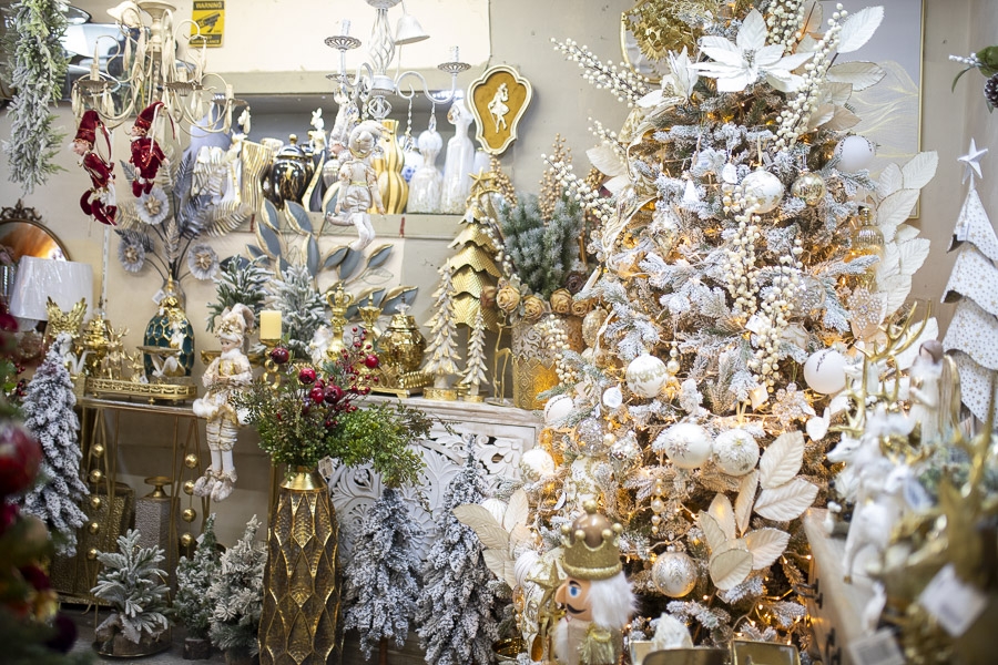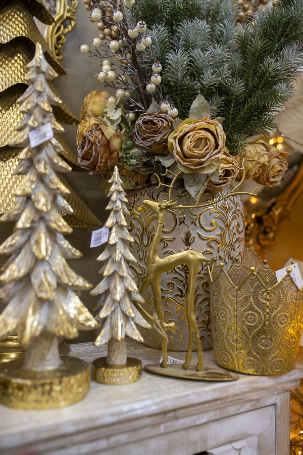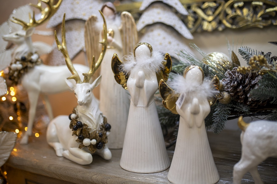Altın, beyaz ve kırmızı tonlarındaki gösterişli Noel ağaçları, toplar, çelenkler ve süsler sıcacık bir atmosfer yaratıyor. Seramik figürler ve masaüstü objeleri ise oturma odası, antre veya mağazanız için mükemmel bir bütünlük sağlıyor.
