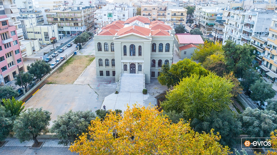 Zarifios Eğitim Akademisi, neoklasik binasıyla Milli İstiklal parkın batı tarafını kaplıyor.