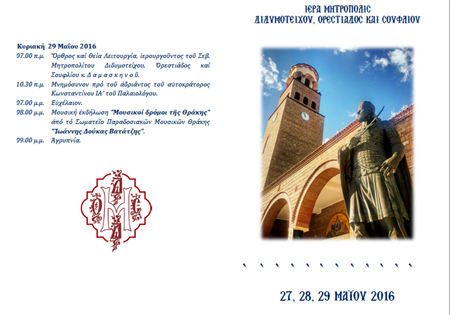 Η Ιερά Μητρόπολη Διδυμοτείχου, τιμά την μνήμη του μαρτυρικού Αυτοκράτορα Κωνσταντίνου ΙΑ΄ του Παλαιολόγου με σειρά λατρευτικών και πολιτιστικών εκδηλώσεων, με επίκεντρο τον Ιερο Καθεδρικό Ναο Παναγίας Ελευθερώτριας όπου φιλοξενείται ο Ανδριάντας του Αυτοκράτορα.